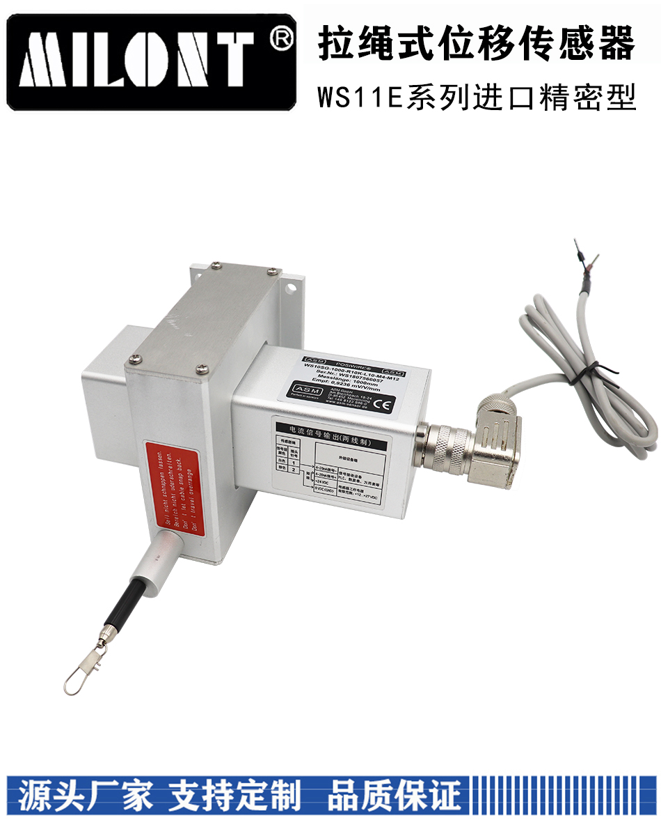 WS12E系列拉繩位移傳感器是德國BEBIK進口傳感器,內部采用電位器原理,精密的機械結構和先進的排線工藝,使其很好的解決了工況復雜環境下造成的掉線,卡線等問題,量程0-10000mm可選,可輸出模擬信號:0-5V,0-10V,4-20mA。數字信號:RS485等。主要適用于:倉儲位置定位、水庫大壩保護、閘門開度控制、壓力機械、造紙機械、紡織機械、金屬板材機械、包裝機械、印刷機械、水平控制儀、建筑機械、工業機器人、射出機、木工機械、電梯、空氣壓縮機、油壓機、高度機、X-Y軸及其它長度位移、液位測量等自動化測量場合。